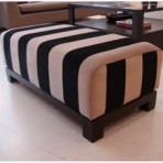 Puff rectangular con base de madera lustrada, realizado en tela con diferentes diseños a elección
